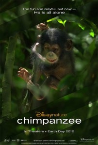 To further collapse the distance between man and monkey, there’s now “Chimpanzee,” the new wildlife film from Disneynature, which follows an orphaned chimp named Oscar in the Tai forest of Ivory Coast in Africa. The film’s real strength is its dazzling cinematography: time-lapse sequences of jungle birds and glow-in-the-dark mushrooms. Whether little Oscar knows it or not, he’s ready for his close-up and filmmakers Alastair Fothergill and Mark Linfield provide us with astoundingly up-close and personal angles of him cracking nuts, climbing trees, and, well, since this is Disney, looking downright adorable. The only bit of pathos in “Chimpanzee” is when Oscar’s mother is slain by a rival group of chimps (led by the unimaginatively named Scar), leaving our little one to starve and scramble vainly to find new sources of support and sustenance. Fortunately for Oscar, along comes Freddy, his group’s alpha male, who improbably adopts him and shows him the ropes. Narrated by Tim Allen, “Chimpanzee” is a wonder to look at but the relentless anthropomorphizing of its star’s experience turns Oscar into a lifeless stuffed animal thrown atop a toy bin rather than a wild animal struggling to survive. This is the only nature documentary that ignores the fierce fact that it’s a jungle out there.