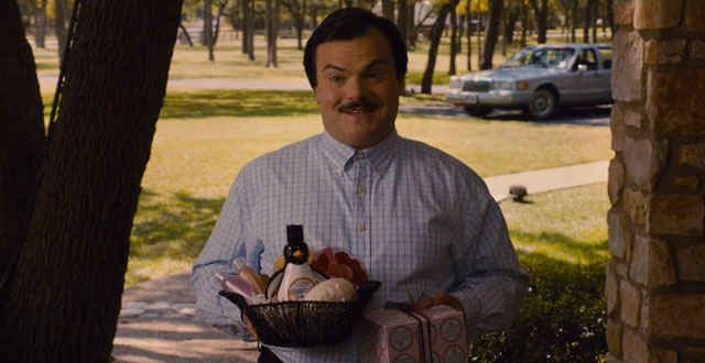 THERE ARE ONLY a handful of comic actors, Woody Allen and Jim Carrey included, who elicit laughter through the sheer power of body language.  Jack Black is certainly amongst those funnymen and, as the eponymous Bernie, with his high belt-line and caterpillar mustache, he resembles a plus-size Robert Goulet.  Beloved by his Texan townsmen, he belts out gospel tunes and dons a sparkling white bandleader outfit in a local production of “The Music Man.”  You won’t see a funnier image this year than that of Black and steel magnolia Shirley MacLaine riding together on a tandem bike.  You also won’t see a better batch of black comedy than “Bernie” this year.